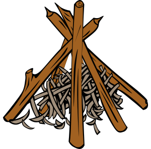 Eks: pyramidebål er hurtigt at bygge, og fint til et hyggebål,